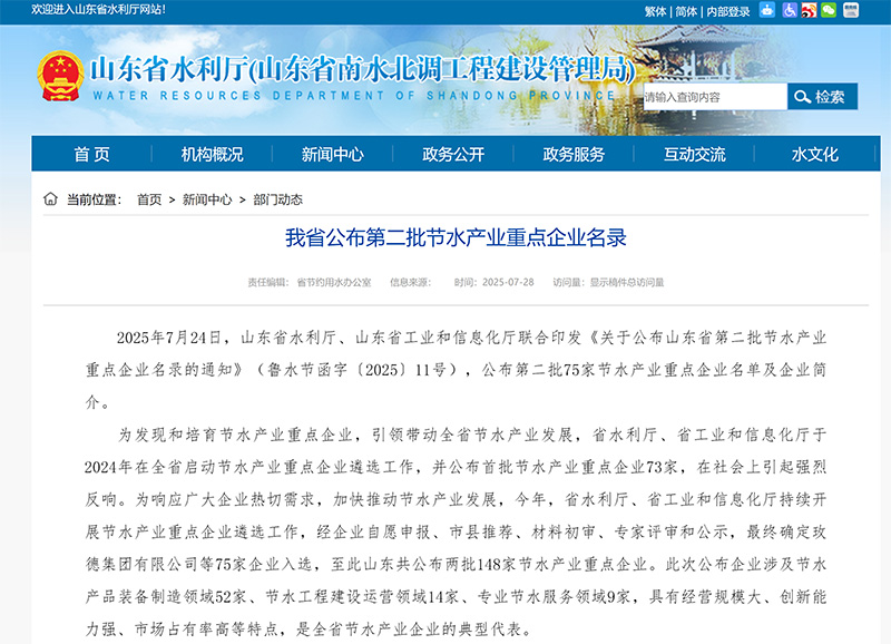 2025年7月24日,我司通過山東省第二批節(jié)水產(chǎn)業(yè)重點(diǎn)企業(yè),為有關(guān)部門認(rèn)可我們的工作...